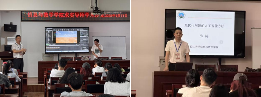 活动开场,张涛老师率先带来最优化问题的人工智能方法主题分享。他深入浅出地向同学们介绍了如何运用人工智能方法求解多目标规划、动态多目标规划、随机多目标规划以及二层多目标规划等问题。创新性地建立了复杂优化问题的求解新范式,大幅提升计算效率,同时还详细阐述了算法收敛性分析的基础工作框架,为在场师生打开了新的研究视野。