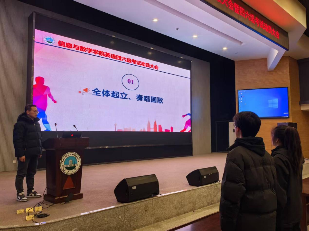 随着雄壮的国歌声响起,全场师生起立,奏唱国歌。这一刻,每个人的心中都充满了对祖国的热爱,同时做好了迎接挑战的准备。大会在庄严而热烈的氛围中拉开帷幕。
