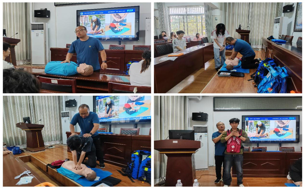 活动现场,蓝天救援队通过“理论授课+场景模拟+实操考核”三位一体的教学模式,为学生们带来一场沉浸式安全教育课。培训内容聚焦溺水事故黄金救援期,系统讲解了溺水预防、水中自救、岸上急救等核心知识模块,重点突破心肺复苏(CPR)与人工呼吸(AED)的标准化操作流程。蓝天救援队结合真实救援案例,深入剖析水域危险识别、救援装备使用及团队协作要点,帮助同学建立科学救援思维。