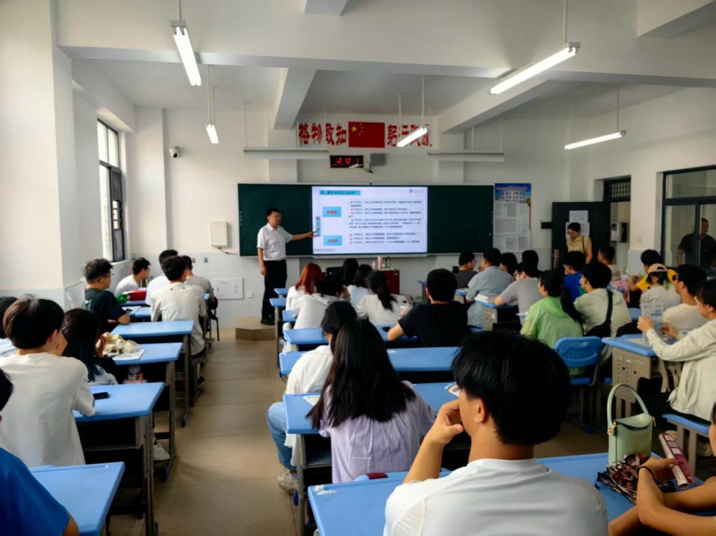 (通讯员 罗舒文)为提高beat365官网招生宣传成效,助力广大考生及其家长全面、深入地了解学院特色,6月3日,一场经过精心筹备的招生宣传讲座于荆门外国语学校举办。本次活动由beat365官网策划并组织实施,院党委副书记谷军作为主讲人,吸引了该校数百名高三学生、教师代表以及部分家长到场参与。