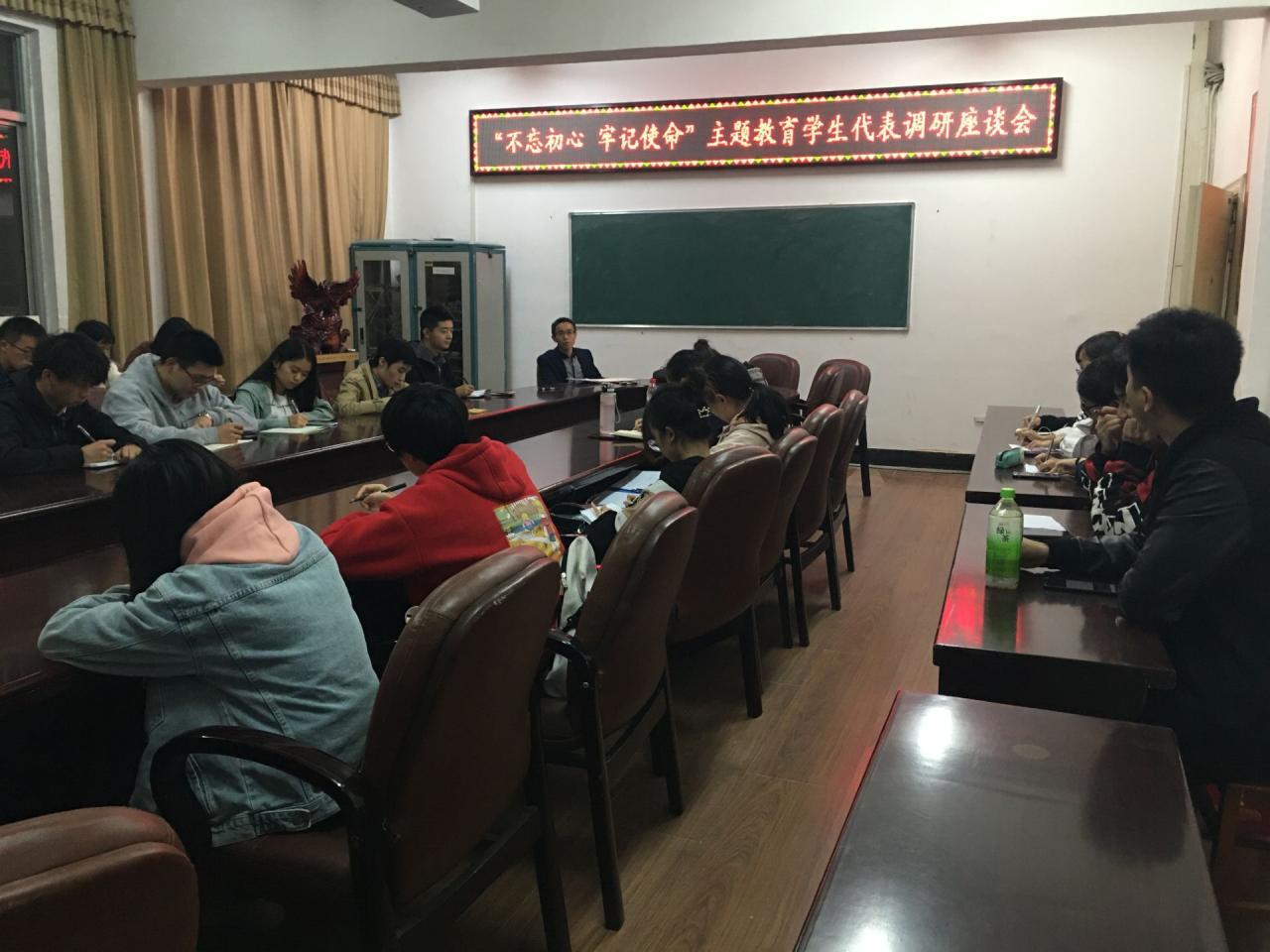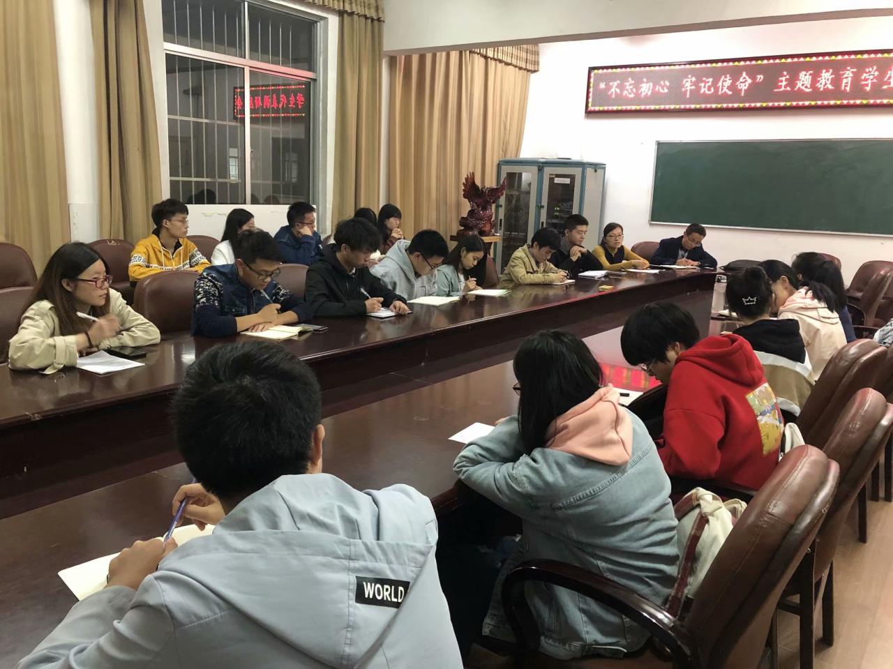 10月15日晚7时,beat365官网在东校区8教400召开 “不忘初心,牢记使命”主题教育学生代表调研座谈会。院党委副书记袁海山、院团委书记严星和学生干部代表参加座谈。