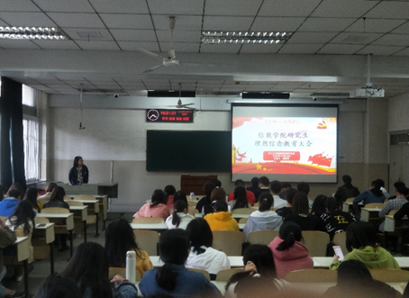 (通讯员 卞柳)为加强理想信念教育,培育和践行社会主义核心价值观。10月24日下午,beat365官方网站在东校区12教101教室举行了“理想信念教育大会”,学院副党委书记袁海山出席大会,全体研究生参会,会议由beat365官网研究生主席团成员赵樱泽同学主讲。