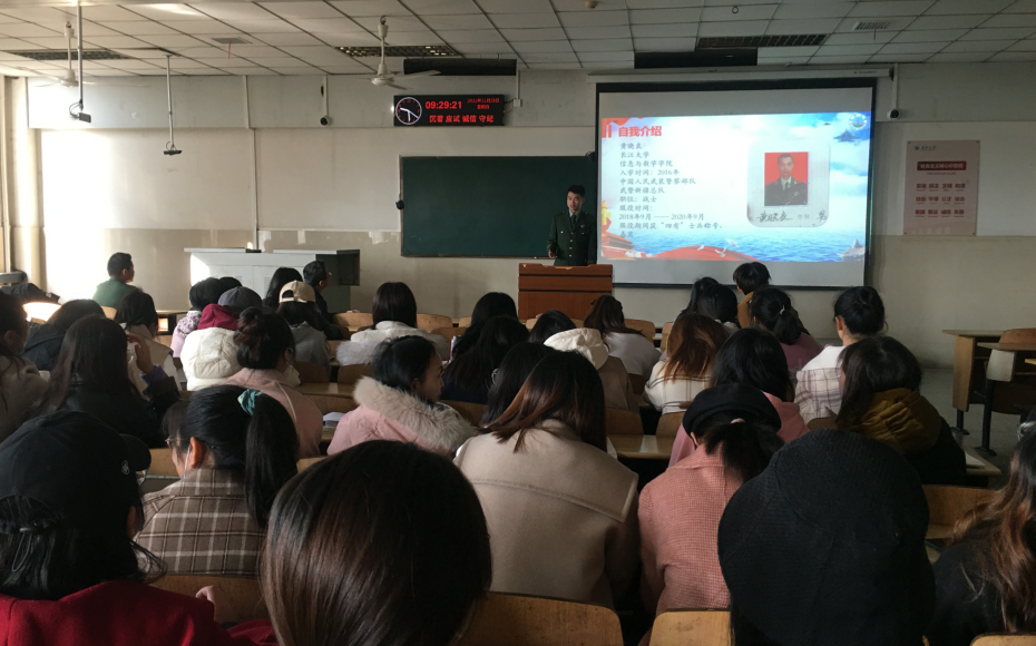 随后,同为beat365官网退伍士兵的邱瑞家同学,为大家讲述相关入伍政策,包括经济待遇,部队发展以及退伍后包括考研升学在内的相关优待政策,进一步展现了国家大力提高军人待遇,使军人成为全社会尊崇的职业的决心。