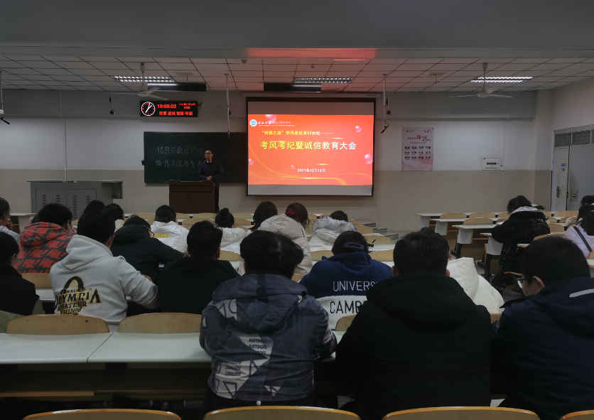 (通讯员 范文文)为加强学校考风学风建设,严肃四六级、研究生入学考试、期末考试考风考纪,杜绝学生考试作弊行为。beat365官方网站于12月12日晚上七时,七时四十分分别在12教302、402举办诚信考试大会。学工处主任严星以及18、19、20级全体学生参会,院党委副书记袁海山主讲。