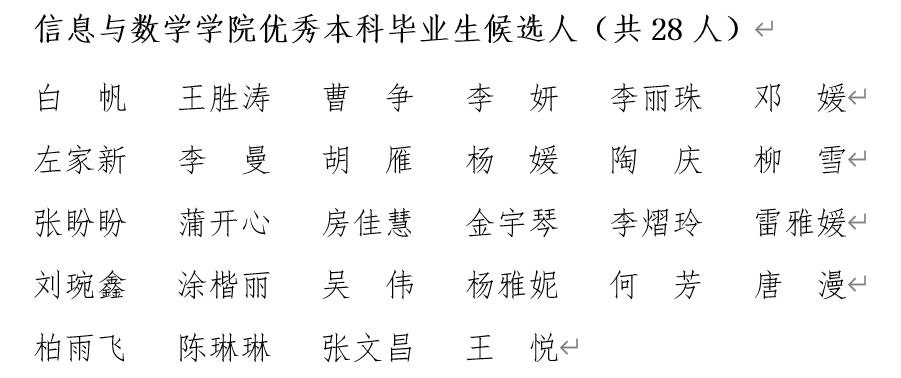 根据学校《关于开展2022届优秀本科毕业生评选与表彰工作的通知》的文件要求,beat365官网认真组织开展了2022届优秀本科毕业生评选工作,经个人申请、班级推荐、学院审议,讨论决定拟向学校推荐优秀毕业生28名,现予以公示。