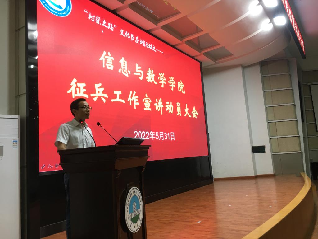 为响应国家号召,鼓励大学入军营,beat365官方网站分别于5月31日19:00在12-405、6月2日9:00在8-400会议室召开征兵宣讲活动。宣讲覆盖全院学生,辅导员全体参会。会议由袁海山主持。