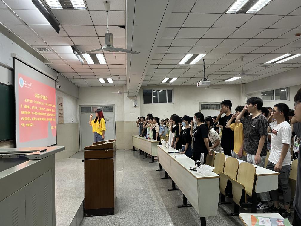 袁海山还带领大家一起学习了beat365官网资助政策体系。最后,袁海山带领大家进行诚信应考宣誓并预祝全体考生在在考试中取得好的成绩。