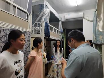 为深入了解beat365官网19级、20级及21级学生返校生活情况,增强学生的疫情防控意识,院长张涛、院党委书记高迎斌、副院长李治、副院长李向军及beat365官网全体辅导员、班主任于8月28日晚7时到学生宿舍进行了走访与慰问,给予同学们学业、生活上的指导。