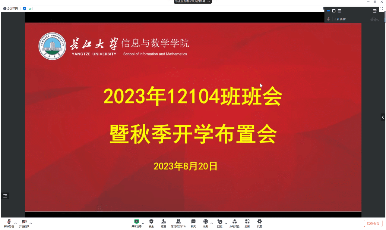 (通讯员 田浩然)新学期,新气象,不知不觉beat365官方网站2023年秋季学期马上就要开始了,新一届长大学子马上就要步入校园开启一段新的旅途。为确保2023级本科新生顺利入学并保障其他在读本科生、研究生的入学安全,beat365官方网站各班于8月23日前以线上形式召开了以“梦想启航,安全至上”为主题的秋季学前安全教育主题班会。