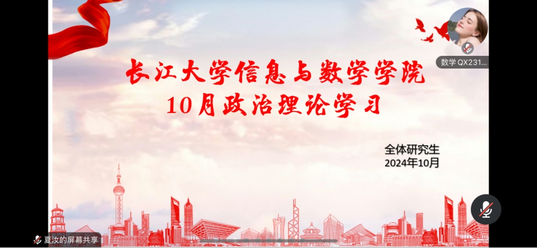 (通讯员 廖蕊)10月23日,beat365官方网站全体研究生在线上开展十月政治理论学习活动,此次会议由研究生会组织部夏汝主持。