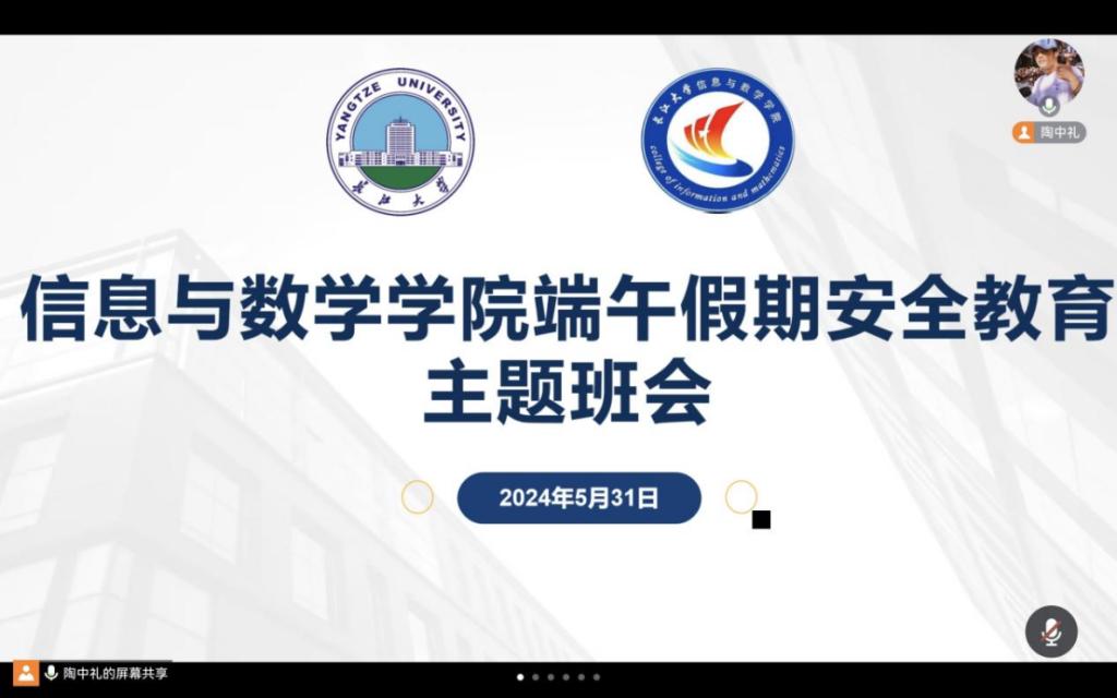[通讯员 陶中礼]为增强学生端午节假期安全防范意识,保障学生人身健康安全,维护学校管理秩序,beat365官网研究生于5月31日以班级为单位开展端午节教育安全主题班会,院全体在籍研究生参与,做到节前安全教育全覆盖。