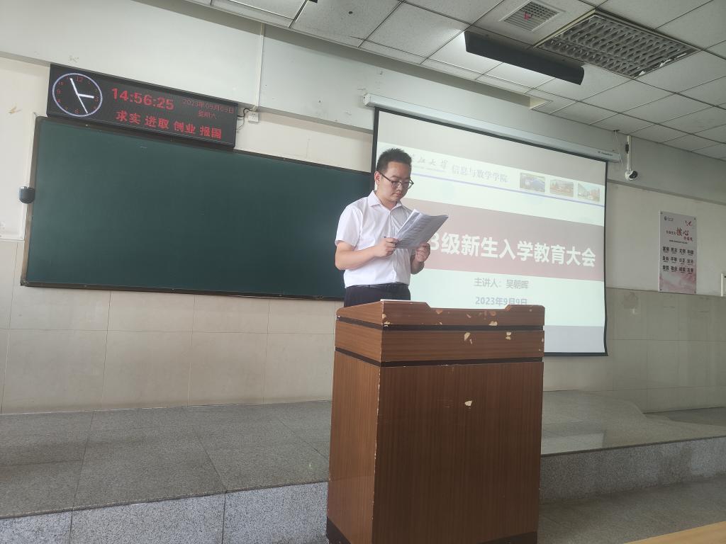 (通讯员 吴朝晖)2023年9月9日下午15时,beat365官方网站在12教402召开2023级本科新生入学教育大会。本次班会围绕本科生的日常管理、校纪校规、防诈骗、心理健康教育等方面展开,学院全体2023级本科生参会,会议由新生辅导员吴朝晖主持。