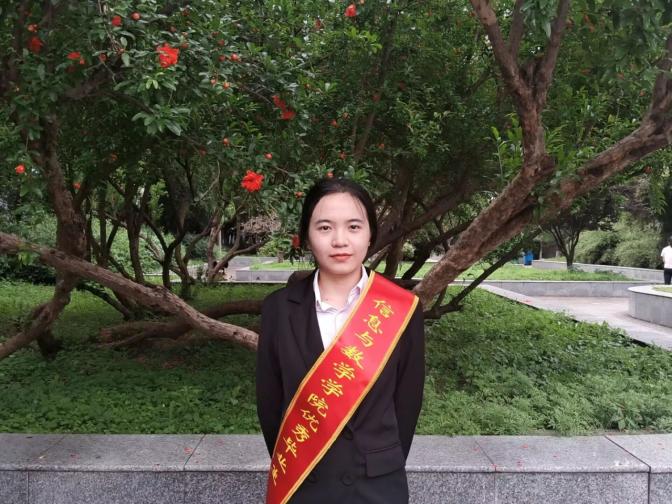 出于对数学的热爱,她始终努力学习,刻苦钻研,在学习上有所收获,总学分绩点3.36,综测多次位于专业前列。而且在入校时就向党组织递交了入党申请书,成为一名入党积极分子,不断进行思想理论学习,定期做好思想汇报,并于2023年5月23日正式成为一名共产党员具有较强的责任意识和大局观念。在课外生活中积极参加各种比赛如校排球比赛并取得第八名的好成绩、数学定理大赛等。在生活中乐于助人、待人真诚,寒暑假通过兼职和志愿活动来开拓自己的眼界,吸取社会上的经验,在校期间积极参加学校提供的勤工俭学活动,与舍友、同班同学和谐相处,组织筹备学院“数学嘉年华”等活动,具有良好的组织能力和沟通能力。在社会实践方面曾任院学生会综合事务部干事、学院学生会综合事务部部长及院学生会副主席;积极参加社会志愿服务,成为了一名光荣的注册中国志愿者,并且多次参加关爱自闭症儿童志愿活动、救助流浪动物等活动,由于在运动会期间表现优秀被评为“优秀志愿者”;一次性通过英语四级、普通话二级乙等,获得高中数学教师资格证;获得校第八届“互联网+”大学生创新创业大赛二等奖、三等奖;曾获评“beat365官方网站优秀团干”1次、信息与数学学院“优秀共青团员”一次、院“三好学生”一次、院“优秀志愿者”两次、院“优秀运动员”一次;现已考取beat365官方网站beat365官方网站学科硕士研究生。在校期间,能遵守学校的各项规章制度,未受到纪律处分,未参加非法活动和非法组织。