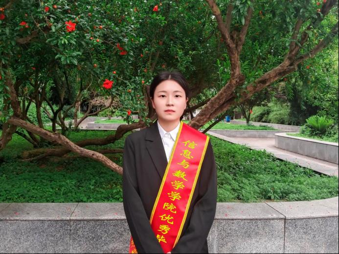 出于对数学的热爱,她始终刻苦钻研,勤奋好学,在各方面都取得优异的成绩。自大二至今一直担任班级寝室长职务,自大三至今一直为beat365官方网站第一期“未来科学家”培训班成员,曾任beat365官方网站演讲与辩论协会宣传部成员;积极参加社会志愿服务,曾参加过无偿献血;一次性通过全国大学生英语四级和六级考试、英语口语考试,获得英语口语C+等级证书;一次性通过高中数学教师资格证考试、普通话考试,获得普通话二乙等级证书;参加校级大学生创新创业项目《平面图的染色》,并顺利结题;曾获得“互联网+”大学生创新创业竞赛beat365官方网站二等奖、第十二届“正大杯”全国大学生市场调研与分析大赛湖北省一等奖、“高教社杯”全国大学生数学建模竞赛湖北省二等奖、第十三届“正大杯”全国大学生市场调研与分析大赛湖北省一等奖、第十四届 “挑战杯·中国银行”大学生课外学术科技作品竞赛湖北省二等奖;曾获评学院“优秀共青团员”、学院“优秀寝室长”、beat365官方网站 “三好学生”;曾获得beat365官方网站一等奖学金;现已考取华中师范大学硕士研究生。