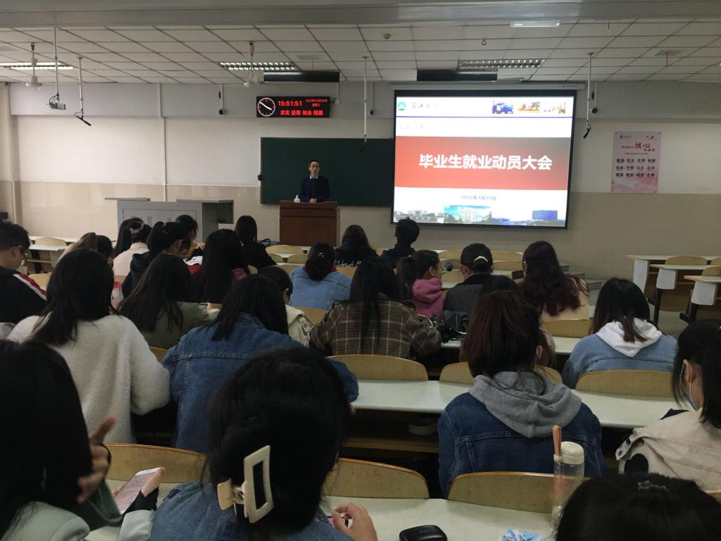 大会伊始,辅导员黄何就目前毕业生就业现状作简要说明,给大家详细讲解了有关就业签约等相关信息,鼓励大家不要逃避就业,勇敢面对。他指出:努力不一定成功,但不尝试一定会失败。