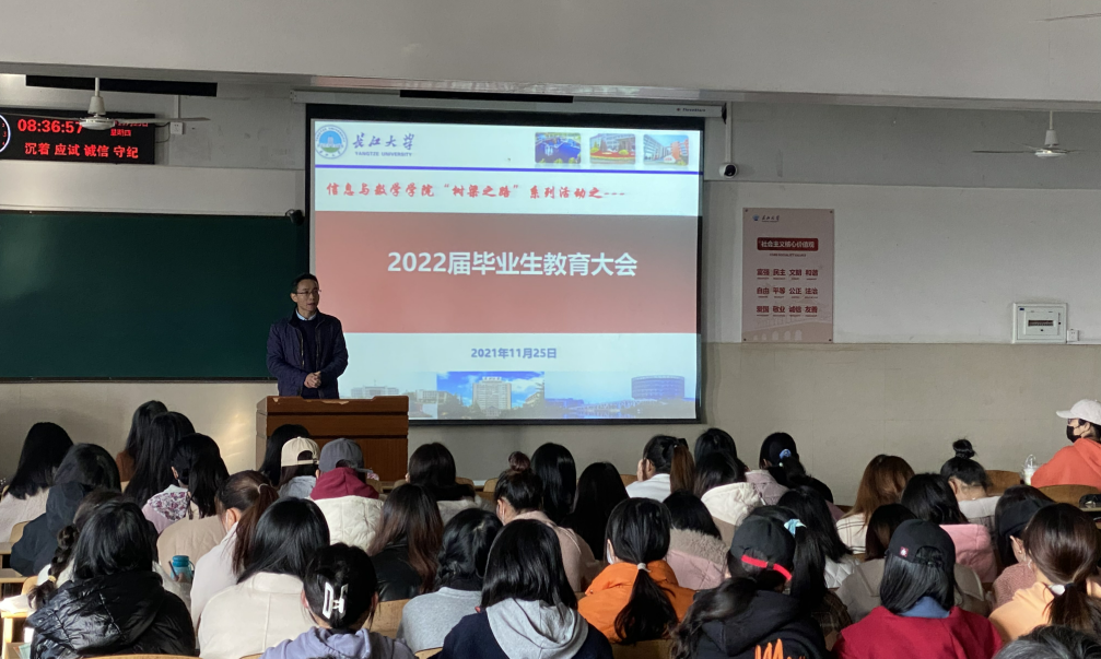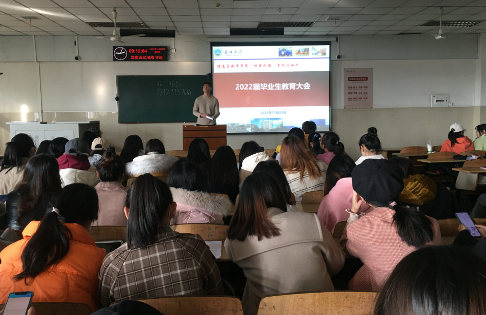 大会第二项,辅导员黄何就近几年的研究生和本科毕业生就业情况做了简要说明,给大家详细讲解了目前的就业政策,鼓励大家关注各方面的招聘信息,不要逃避就业,努力尝试。他指出:只要肯吃苦肯努力,就一定会闯出一番事业。