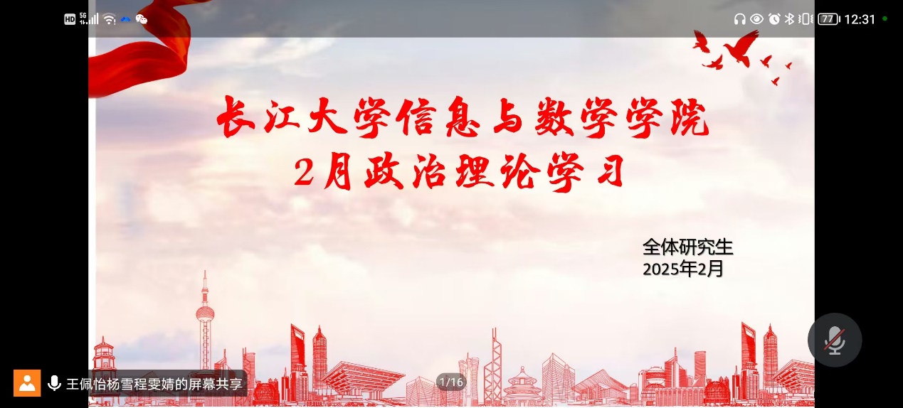 (通讯员 蔡满蓉)2月26日,beat365官方网站全体研究生在线上开展政治理论学习活动。活动重点围绕党的建设、国家经济发展和未来战略方向展开,旨在深刻理解和领会习近平总书记系列重要讲话精神。此次活动由研究生会组织部王佩怡主持。