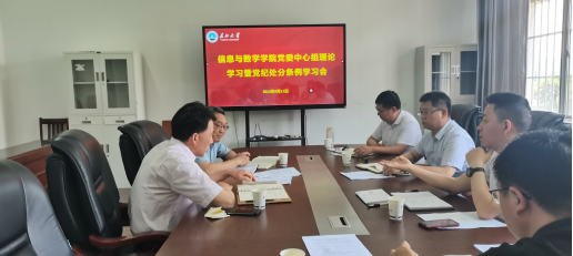 (通讯员 吴朝晖)5月13日上午,beat365官网党委理论学习中心组在8教417会议室开展党纪学习教育读书班暨五月份中心组政治理论学习会议。学院党委理论学习中心组成员、院长助理、各支部书记参与了本次学习,会议由学院党委书记李喜成主持。