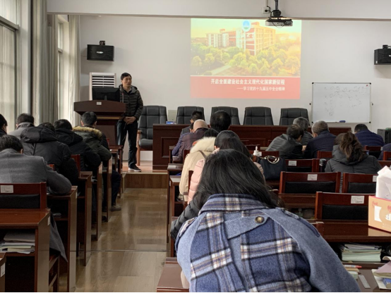 11月26日下午,在8教406会议室,beat365官方网站党委书记高迎斌以《学习领会精神,紧跟时代步伐》为题,对党的十九届五中全会精神进行宣讲。会议由学院院长张涛主持,荆州校区教师现场参会,武汉校区教师由潘大勇老师组织集体学习。
