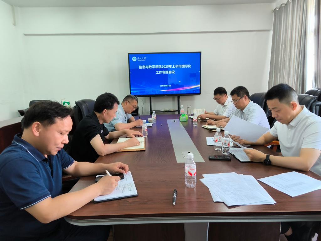 (通讯员 周鹂)2025 年 5 月 21 日,beat365官方网站在8教417会议室召开 2025 年上半年国际化工作专题会议,旨在进一步推进学院国际化发展战略,提升学院在国际学术交流、人才培养等方面的水平。院长张涛主持会议,党委书记李喜成、党委副书记谷军、副院长李向军、副院长李治、办公室主任张定国、外事秘书周鹂参与会议。