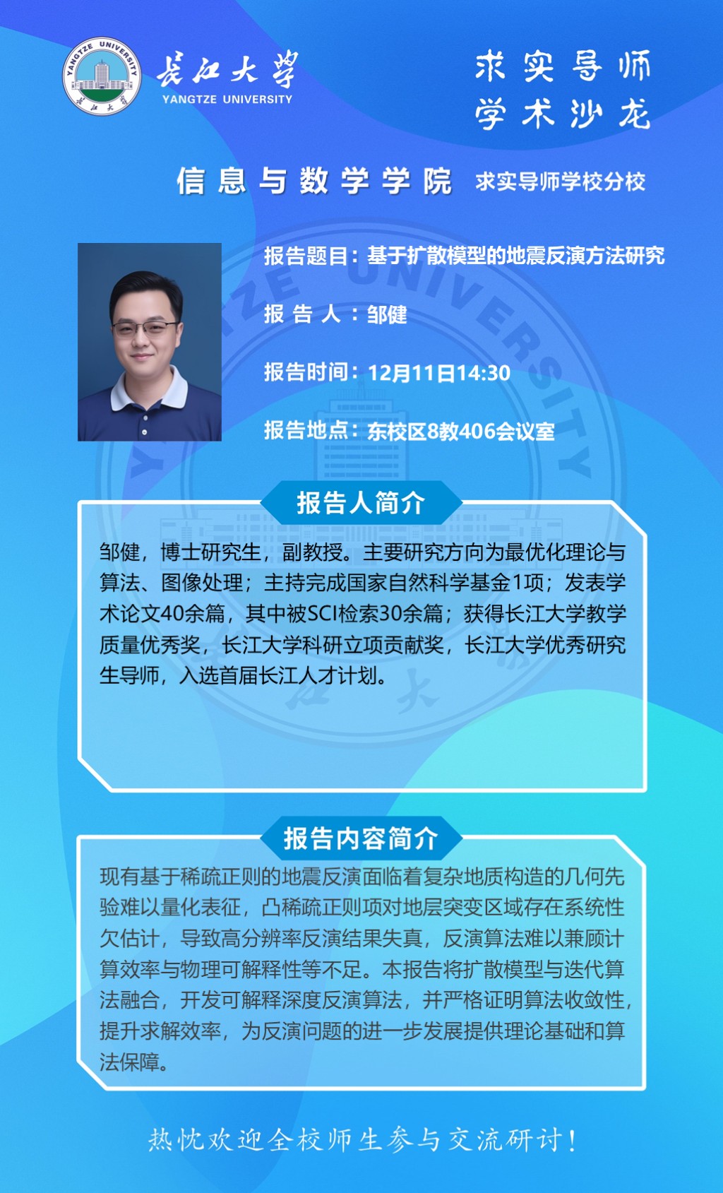 报告人 邹健 副教授 报告时间 2025年12月11日14:30