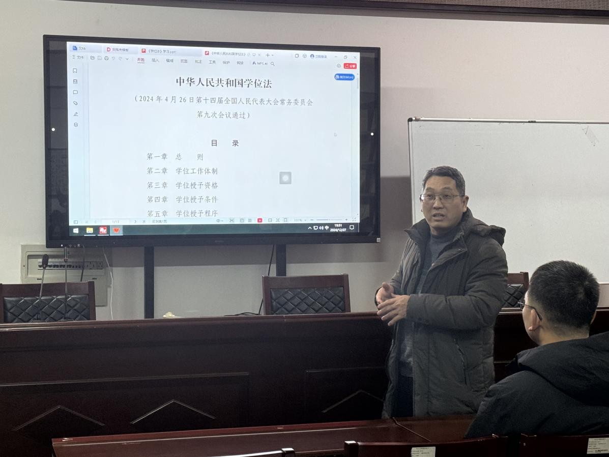 会上,李院长对《学位法》进行了全面解读,阐述了《学位法》的新变化、新要求和新趋势。特别指出,随着《学位法》的实施,学位授予工作将面临新的挑战,必须学习把握其精神实质、全面贯彻落实到位,以确保学位授予工作的公正性、权威性和规范性。并对beat365官网硕士学位授予流程、标准及要求等进行了说明。