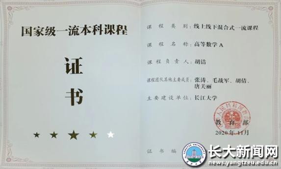 学院着力推进一流课程建设,坚持内涵发展。《高等数学》现已建成省级精品课程,《数学分析》《数值计算方法》《线性代数》和《概率论与数理统计》成为校级精品课程。2021年,《高等数学A》入选国家线上线下混合式一流课程。