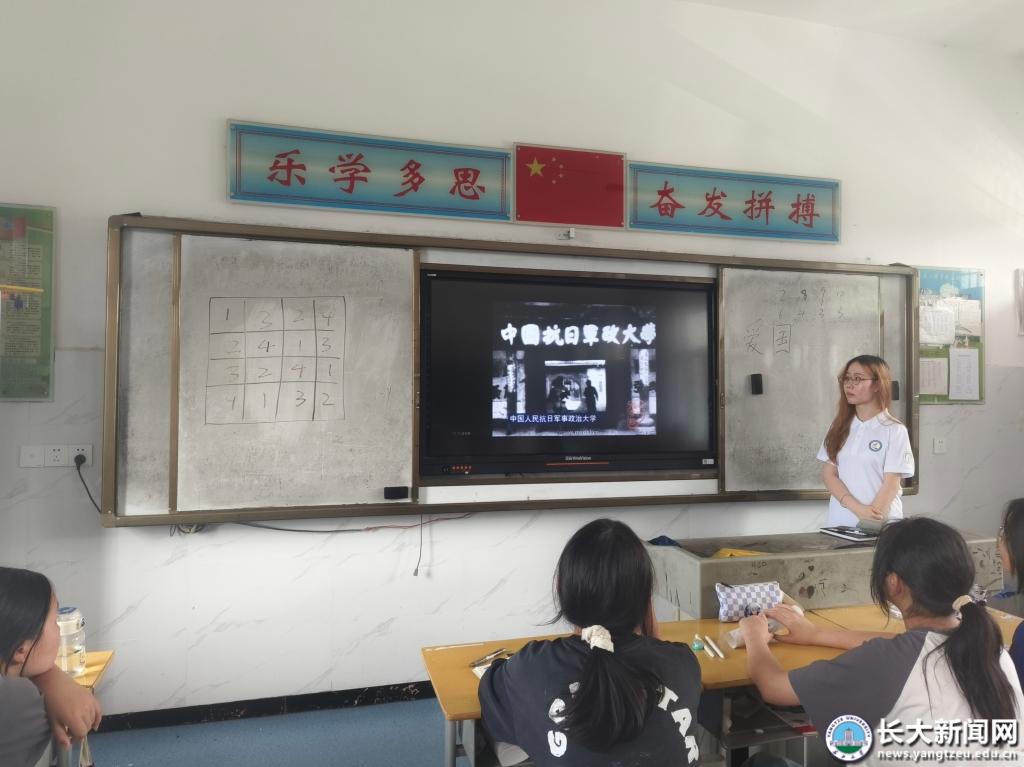 7月5日下午,队员通过播放视频、宣讲的红色故事,向学校801班同学介绍了中国抗日军政大学的起源与发展。什么是抗大精神的内涵?为何要时刻保持危机意识,始终将爱国放在第一位?在队员们的讲解中,也逐渐根植于同学们的心中。志愿者和同学们共同学习了中国抗日军政大学校歌,并决定将该歌曲定为班歌。