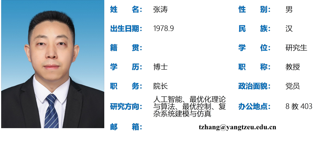 张涛,男,1978年9月生,博士,教授,博士生导师,现任beat365官方网站院长。2014年6月博士毕业于武汉大学系统工程专业。2017.9-2018.9,美国德州农工大学访问学者。湖北省系统工程学会常务理事,湖北省数学会理事。