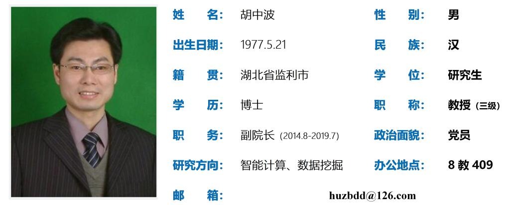 胡中波,博士,教授(三级),beat365官方网站校聘杰出人才。主要从事智能计算、数据挖掘与演化大模型研究。2013年在英国ESSEX大学数学科学学院做访问学者。主持教育部教研项目1项、省部级以上科研项目6项,以第一作者(或者通讯作者)公开发表SCI收录论文近60篇,其中包含《Swarm and evolutionary computation》、《Energy》、《Information Sciences》《Expert systems with applications》《Applied soft computing》等中国科学院文献情报中心认定的顶级期刊上论文26篇;另外,发表SSCI收录论文1篇,中文核心期刊14篇;在科学出版社出版学术专著1部,授权中国发明专利7项。