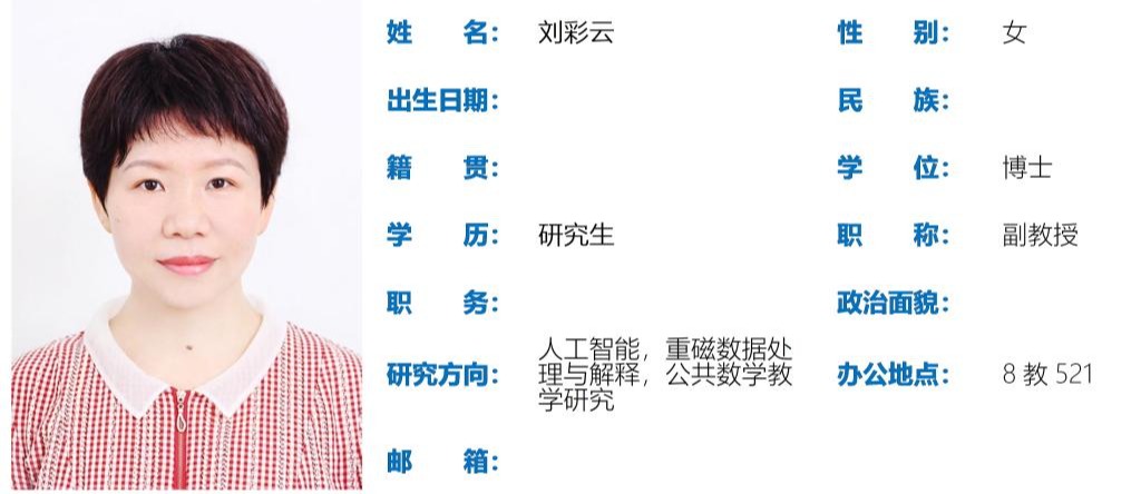 研究方向为:人工智能,重磁数据处理与解释,公共数学教学研究。